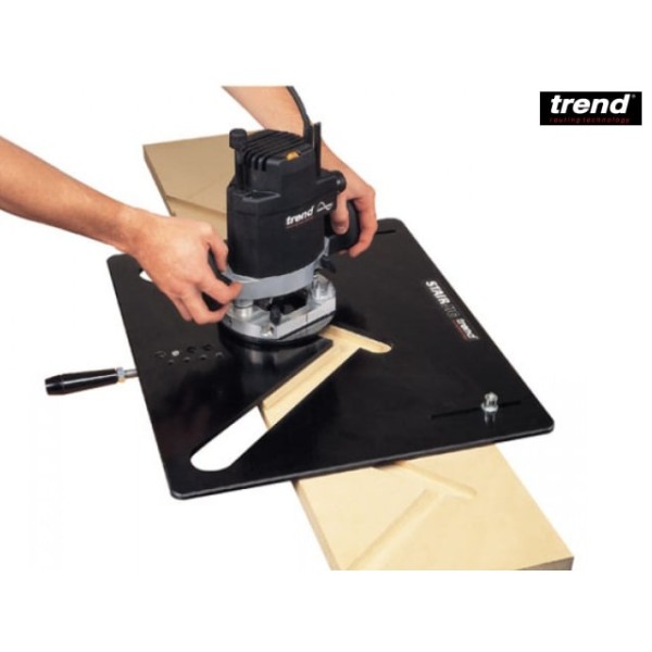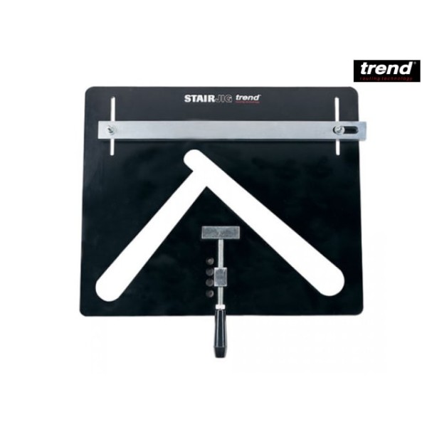 Closed Riser Staircase Jig A is constructed from hard wearing solid laminate and includes a reversible fence for exact matching of stairs,Kit includes:-1 x Adjustable reversible clamp.1 x Reversible clamp bar.1 x Sub-base.1 x Nose piece.1 x Line up pin and bush.2 x Spanners.