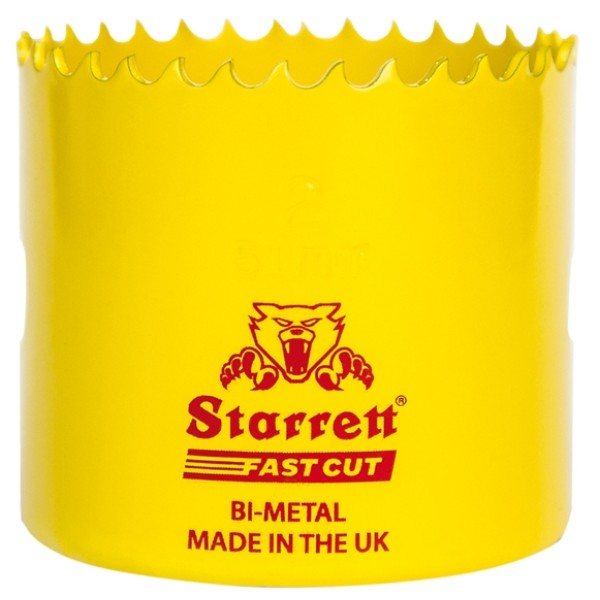 Starrett Fast Cut Bi-Metal Holesaws provide a smoother, faster cut on a wide range of materials, when compared to the previous constant pitch saw. Improved tooth material and 5.5 TPI/25mm tooth form for enhanced heat and wear resistance and greater product life.
