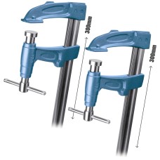 Screw Clamps "Super Extra" with powerful Clamping with less Effort.Nodular cast Iron Jaws, New ergonomic design.Bar attachment to the Jaw by a Rivet Free System. PATENTEDTrapezoidal Tread Totally Sealed and Permanently lubricated.Handle with multiple Choices of positioningHigh resistance Steel Bar.Hardened Steel Brake. Braking System of Total WarrantyGreater lightness and ergonomics. Less heavy than any model of equivalent strength.Long useful life of the product. Encapsulation of the clamping m..