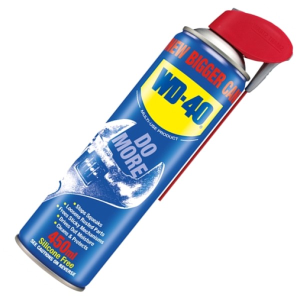 WD-40 is an all purpose liquid for displacing moisture, corrosion control, lubrication, cleaning and penetration. It has the ability to penetrate the minute grain boundaries on all metals. Although not essentially a lubricant, WD-40 is regularly used to lubricate all light machinery and electrical equipment. WD-40 protects metal from rust and corrosion, penetrates stuck or jammed parts, displaces moisture, and lubricates just about anything. WD-40 is also great when it comes to cleaning grease, grime, and other marks from most surfaces.