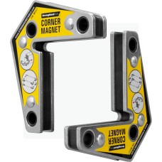 Create 90º corners by holding from the outside, providing you with an unobstructed area for inside tack welds.One side corner “relief” provides clearance for tall lips.Use the outer edges of the Corner Magnet for setting up materials at 60º.Dimension (in) 3.3 x 3.8 x 0.6Max. Pull Force (lb) 30Weight (lb) 0.9..