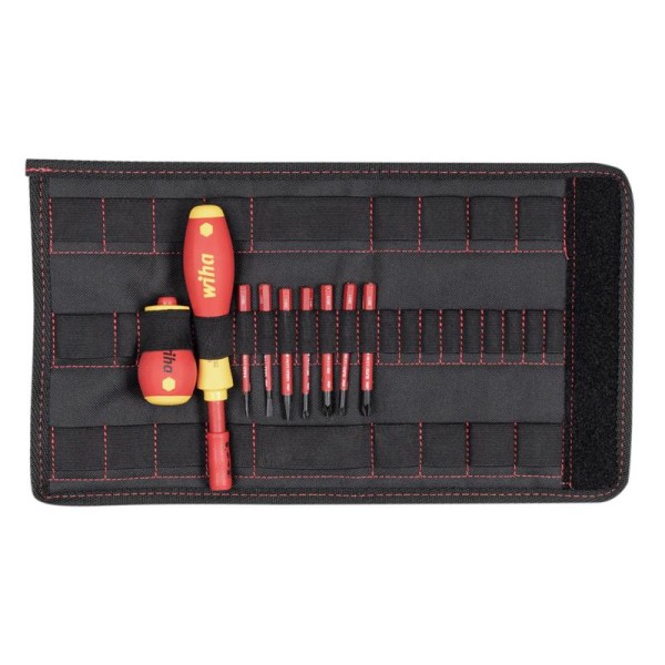 The Wiha SoftFinish® electric slimVario Interchangeable Screwdriver Set covers multiple applications in one compact case, reducing the need for carrying multiple large screwdrivers. Ideal for electricians who are often faced with different screw profiles when working on live parts during their daily work.